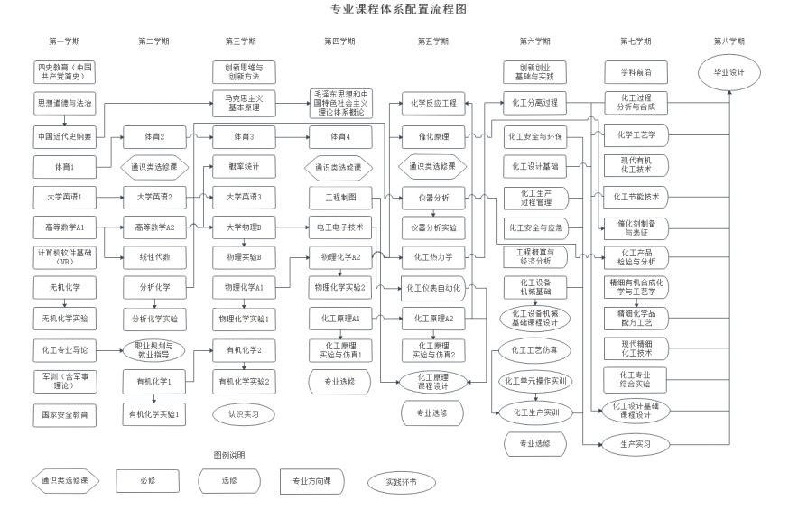 无机化学、分析化学、有机化学、物理化学、化工原理、化学反应工程、电工电子技术、化工热力学、化工设备机械基础、化学工艺学、化工设计基础、化工安全与环保等。