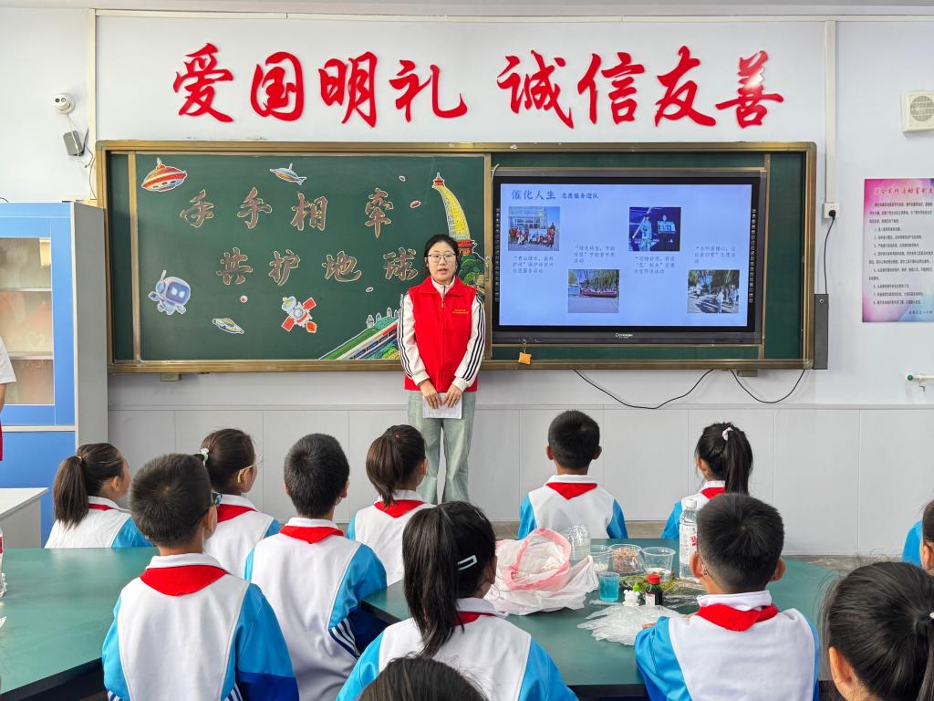 接着,志愿者们通过科普《环境保护法》,讲述个人环保行动案例,引导同学们从身边小事做起,积极践行环保理念。环保知识竞答更是将课堂气氛推向高潮,同学们纷纷抢答、踊跃发言。最后,志愿者带领同学们共同制作生态瓶,将如今天鹅欢鸣的女儿河畔、波澜清澈的渤海沧溟,绿意盎然的大美锦州展现在小小的生态世界,传递着生态保护的深远意义。