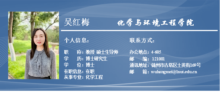 吴红梅,女,1979年生,辽宁阜新人,博士,教授,硕士生导师,锦州市五一劳动奖章获得者。现任中国化学会会员、 锦州市基础学术与技术带头人。