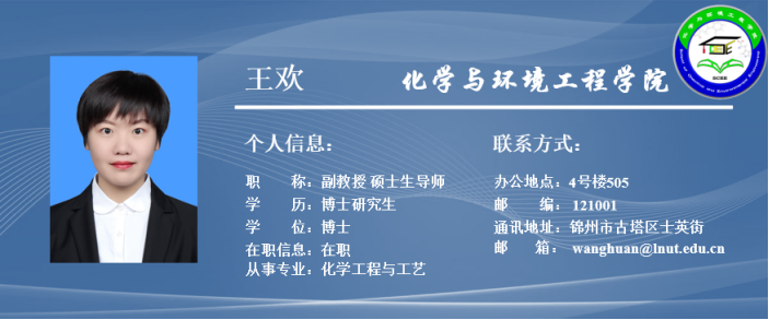 王欢,女,1982 年生,辽宁锦州人,博士,副教授,硕士生导师。2019年毕业于陕西师范大学应用化学专业,获工学博士学位,现任WilliamHill威廉希尔化学工程与工艺专业教研室主任。