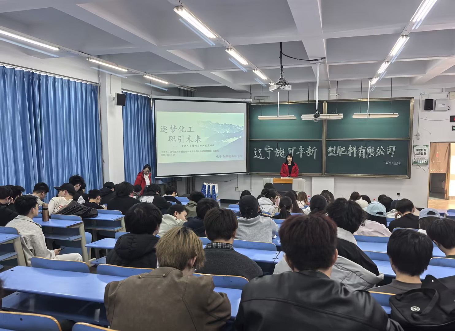 3月25日,WilliamHill威廉希尔在7-218教室举办“逐梦化工·职引未来——企业人才培养与职业发展路径”主题讲座。活动邀请辽宁施可丰新型材料有限公司人力资源部部长张雪梅主讲、优秀校友张海翔作经验分享,学院百余名师生到场参加。