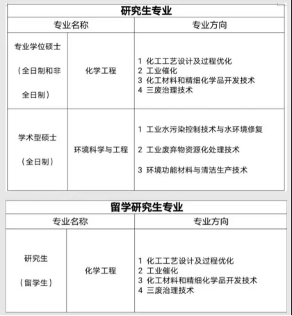 我院目前拥有化学工程专业硕士和环境科学与工程学术型硕士学位点,化学工程专业硕学位点设有化工工艺设计及过程优化、工业催化、化工材料和精细化学品开发技术、三废治理技术等研究方向;环境科学与工程学术型硕士学位点设有工业水污染控制技术与水环境修复技术、工业废弃物资源化处理技术、环境功能材料与清洁生产技术等研究方向。目前,学院已打造一批水平较高的科研实践创新平台,拥有“固体废弃物资源化工程技术研究中心”和“生态环境保护与修复中心”、工程训练中心、虚拟仿真中心、分析测试中心和创新实验室等。